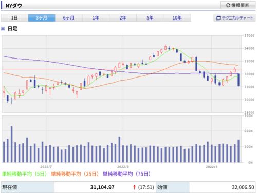 こうなってくると円安ドル高がまだまだ進みそうですね。 朝起きたらニュースでNYダウが1,000ドル超下落という文字が目に入り 何か起きたのかなと思ったら米国CPIが予想より上振れしたのが発表されて インフレがまだ進行中⇨利上げがまだ続く⇨緊縮が続く⇨株安…